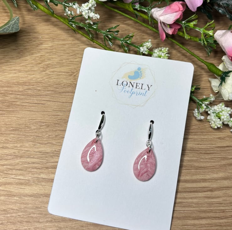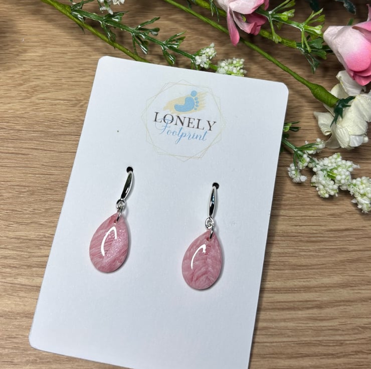 Pink teardrop earrings handmade from polymer clay. These lightweight earrings are perfect for spring and summer outfits, or as a thoughtful gift for someone special. Lilac teardrop earrings already also available.