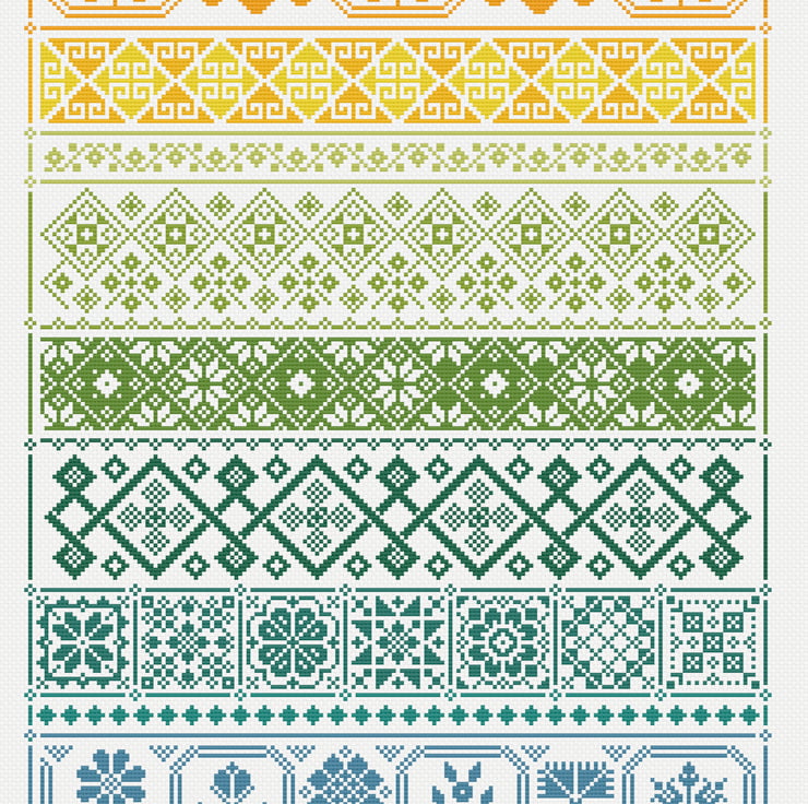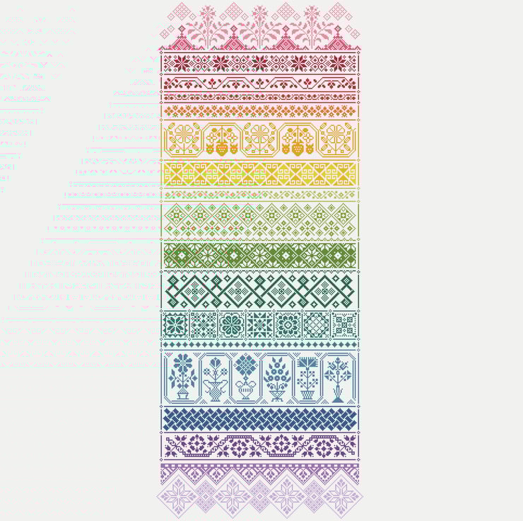 Cross Stitch Quaker SUPER LONG Band Strawberry Sampler with, flowers, Vases, Borders, Ackworth vintage folk art PDF counted chart 216A