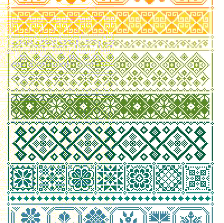 Each chart created in 3 formats colour blocks, Pale colour blocks with symbols on the top (like in the magazines) and black and white symbols, to suit whichever printer you have. I love bright colours, and that's the recurring theme to all my patterns. I am sure you won't be disappointed!