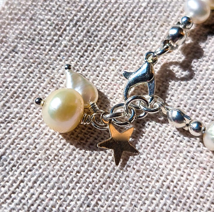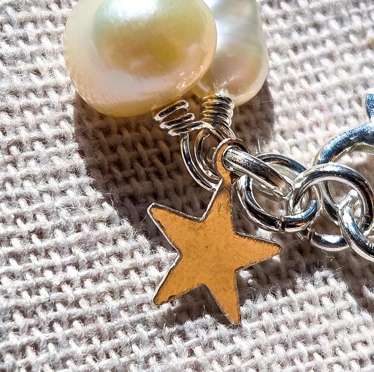 Each bracelet is carefully handcrafted and finished with a sterling silver lobster clasp and a short extension chain, giving you just a little flexibility to find the perfect fit. I've added some hand-wrapped miniature baroque freshwater pearls and a sterling silver star charm to the extension for a little extra celestial magic.