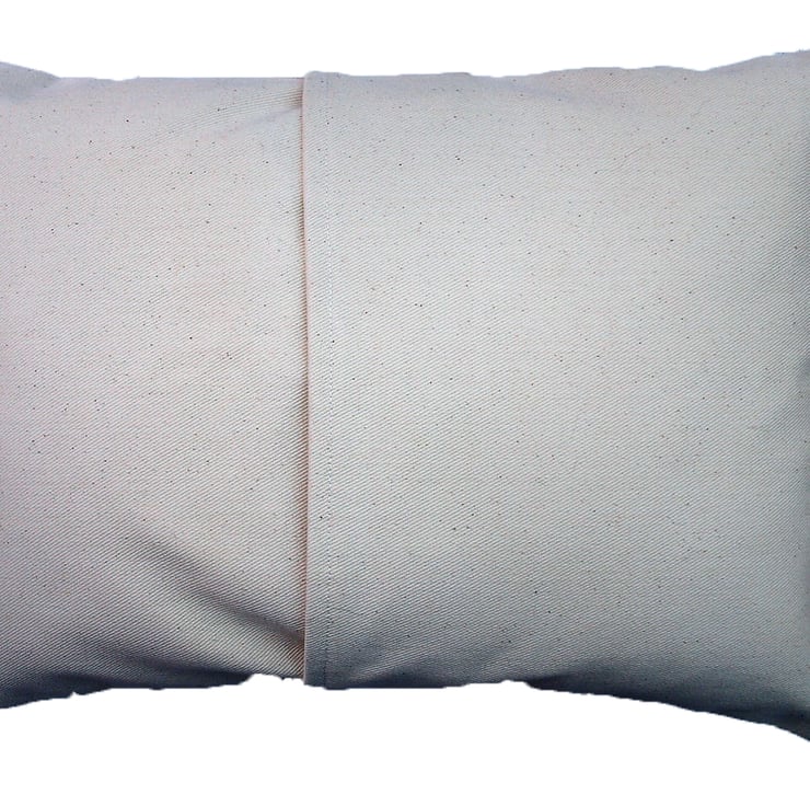 It is envelope design with a matching plain cream hardwearing fabric on the back and comes complete with premium hollow fibre cushion pad