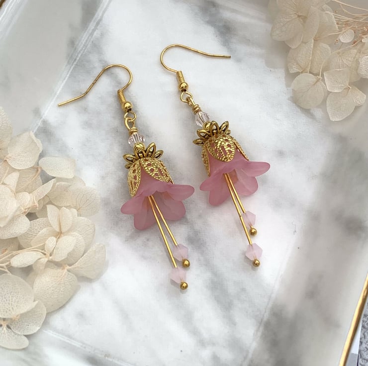 These are really pretty pink flower earrings and would make a lovely finishing touch to any outfit or would make a great gift for someone special.