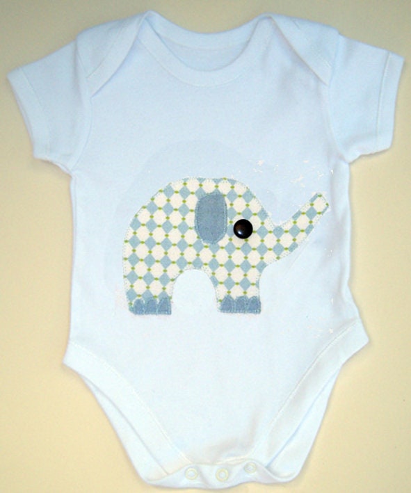 A fun sleepsuit, appliqued with a cute little elephant spraying water.