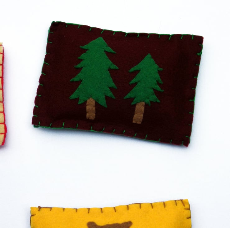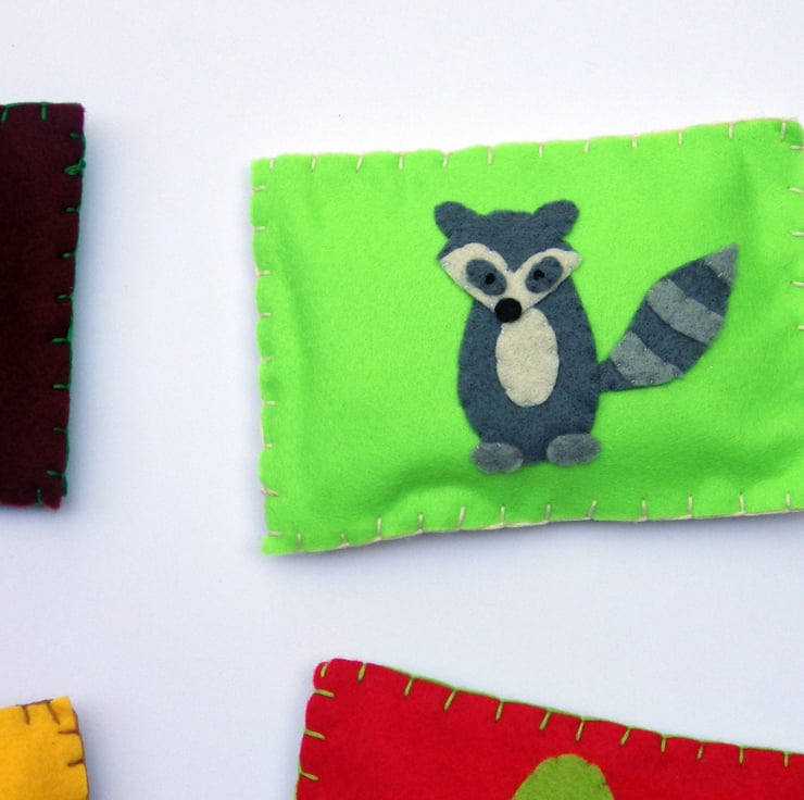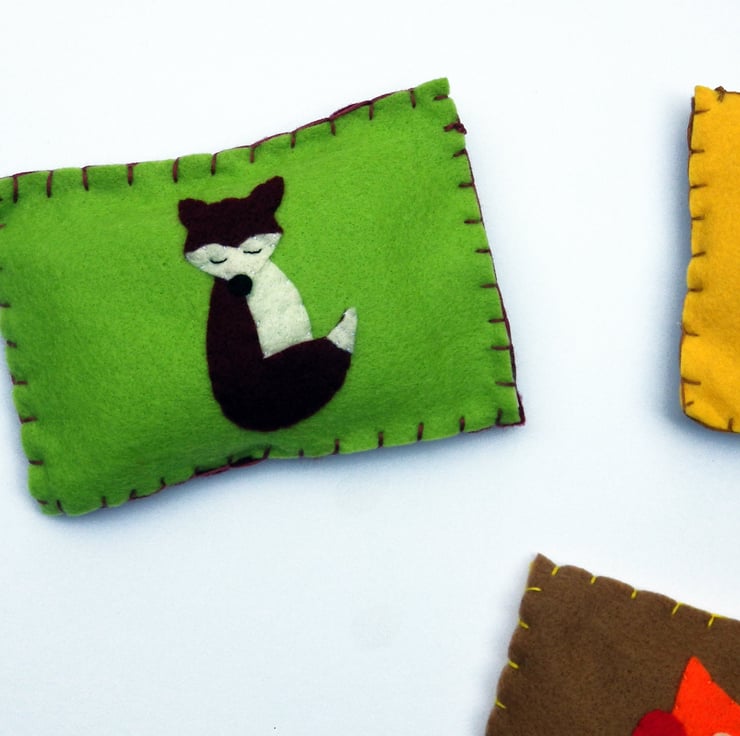 These cute bean bags come in sets of eight. Each bean bag features either a tree, fox, acorns, owl, bear, racoon or toad stools appliquéd to the front.