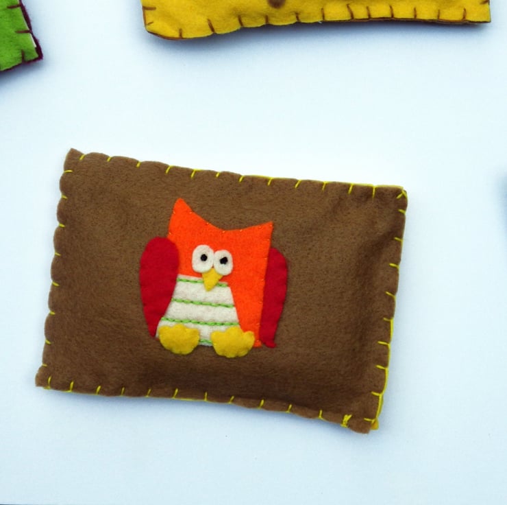 Each bean bag is made of felt with a cotton lining. They are filled with rice and securely stitched.