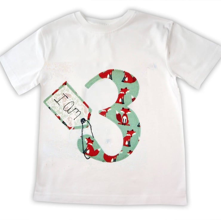 A fun t-shirt, appliquéd with the child's age and a little tag, which reads either I am or (Child's name) is, e.g Claire is. Please leave a note with what you would like the tag to say and the number when making payment.