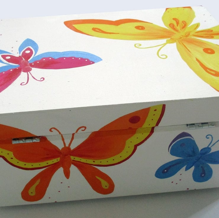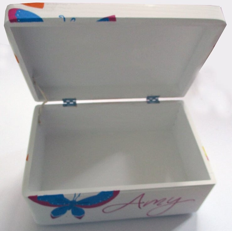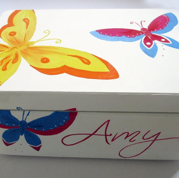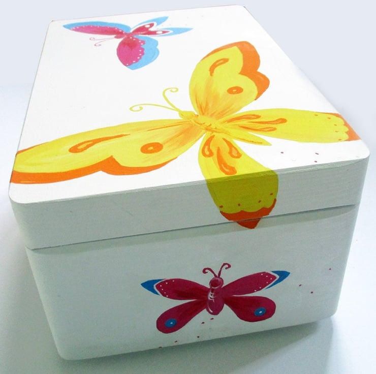 This cute keepsake box is hand-painted with butterflies, perfect for keeping photos, notes, jewellery, trinkets, or any other item safe.