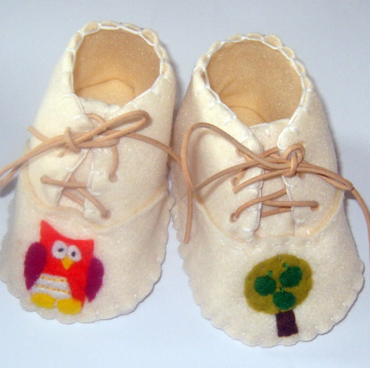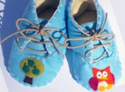 These cute little booties are handmade out of high quality felt and are available in blue, pink or cream