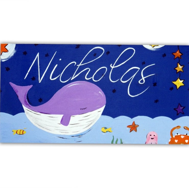 This cute set consists of a whale clock and a matching door sign. Makes a wonderful gift for a newborn baby,