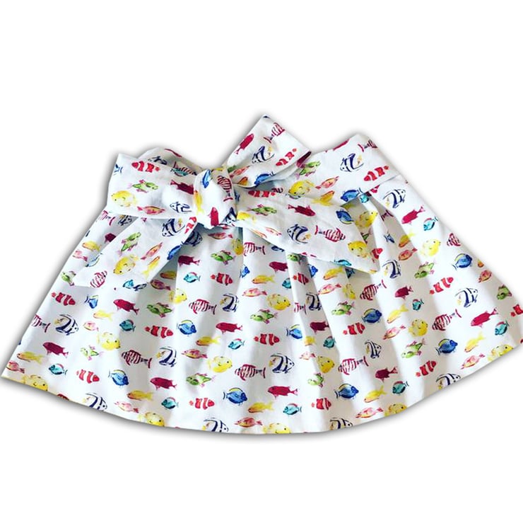 This adorable little out fit consists of a fish skirt and personalised t-shirt. T-shirt is personalised with a letter and a little tag which reads is for "...........(name)", (please leave a note of the letter and name you would like the t-shirt personalised with when making payment).