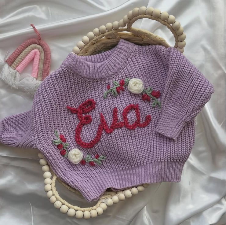 A beautifully soft jumper, personalised just for your little one – hand-embroidered with love and care.