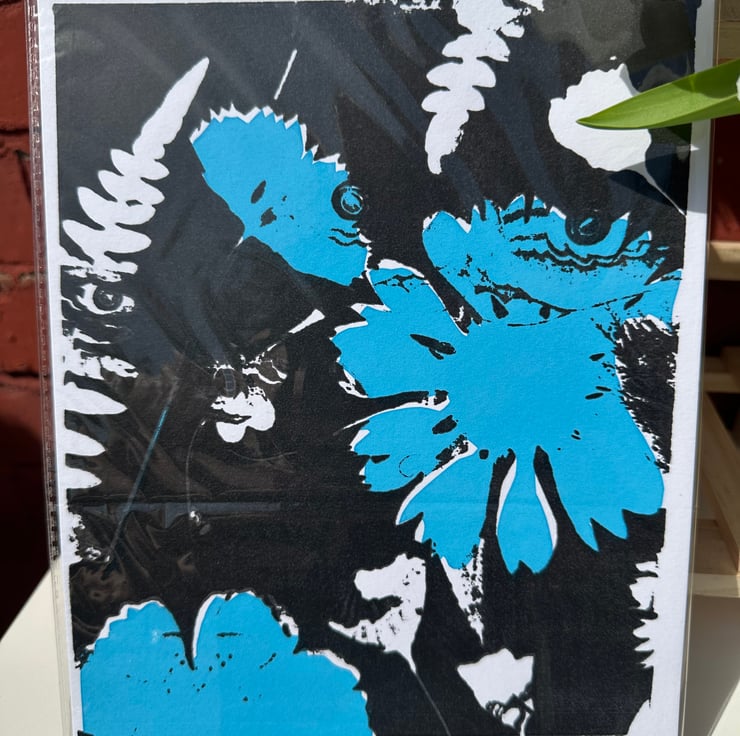 This handmade A4 screen print is inspired by cyanotypes and the quiet beauty of the natural world. Created from my own design, it layers pressed flowers, butterfly wings and moth wing patterns in rich blue and black inks.