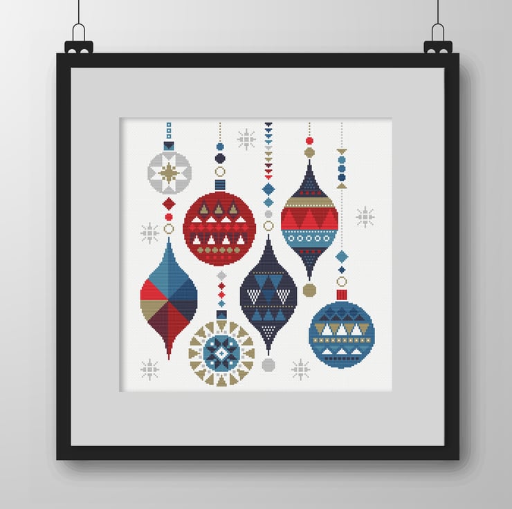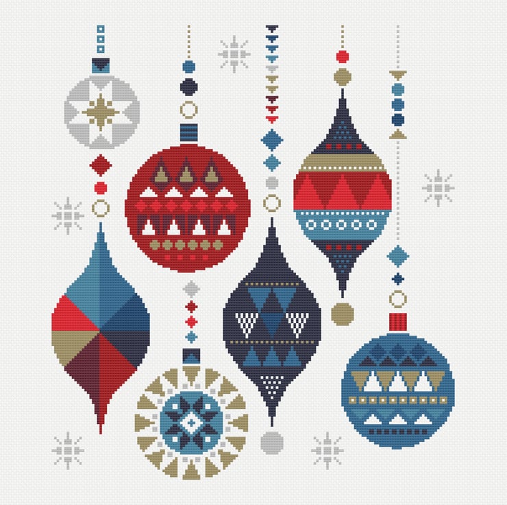 Cross Stitch Pattern Christmas Tree Baubles, geometric Scandinavian folk art style winter holidays by Vivsters PDF counted chart 296