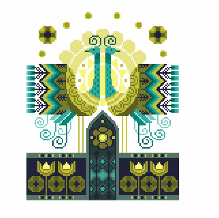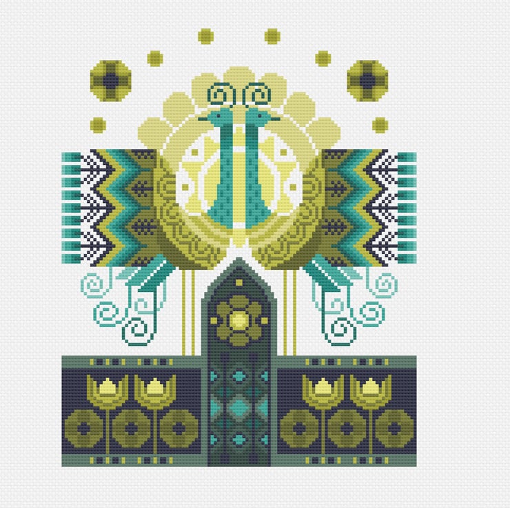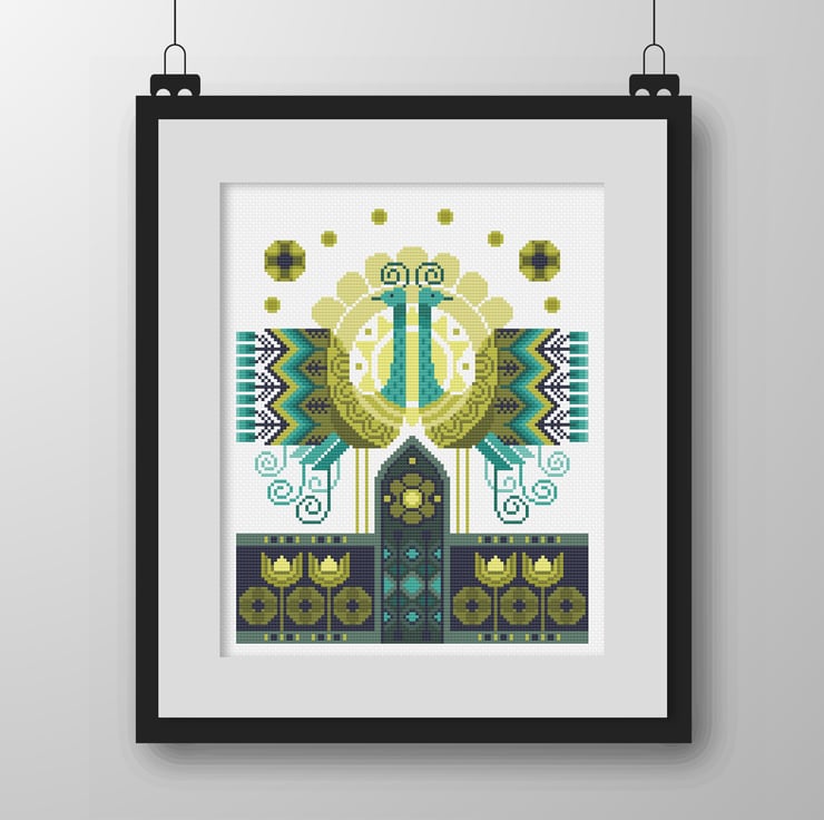 Cross Stitch Scandinavian style geometric folk art Jardin du Paon Peacocks and flowers cross stitch design by Vivsters PDF counted chart 298