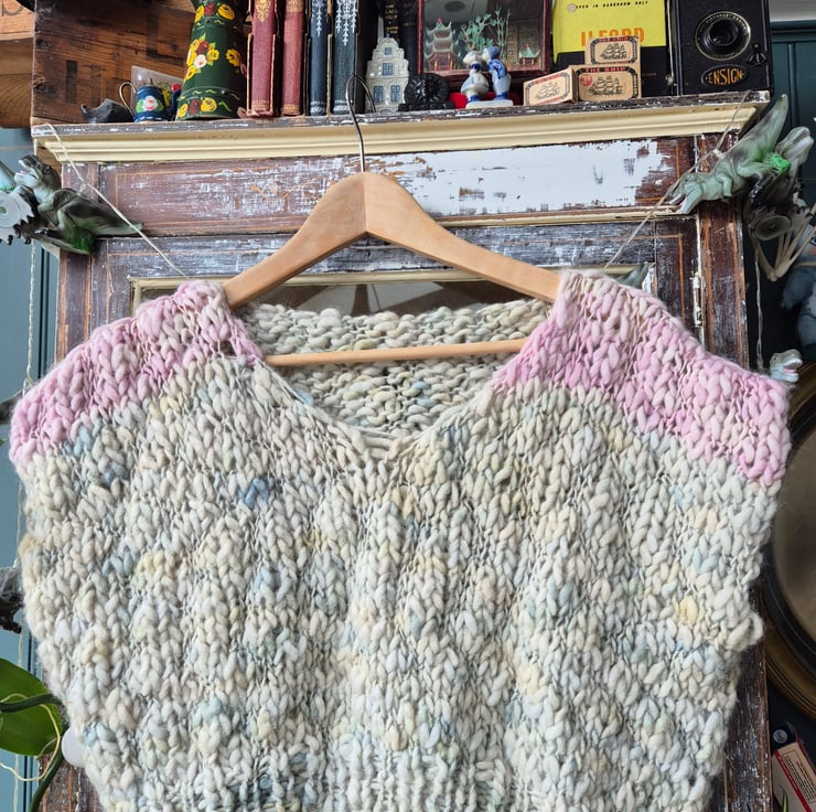 Each tank top is unique and this particular knit is cropped at 17 inches, lovely worn with high waisted skirt or dress.