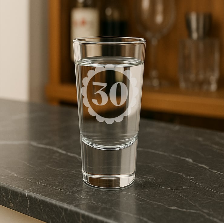 Celebrate a milestone in style with our custom engraved shot glass, designed with a bold petal frame and your chosen age at the centre. Whether it’s an 18th, 21st, 30th or any birthday worth toasting, this thoughtful keepsake makes the perfect gift for party lovers, shot glass collectors, or anyone marking a special occasion.