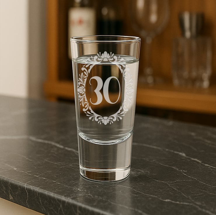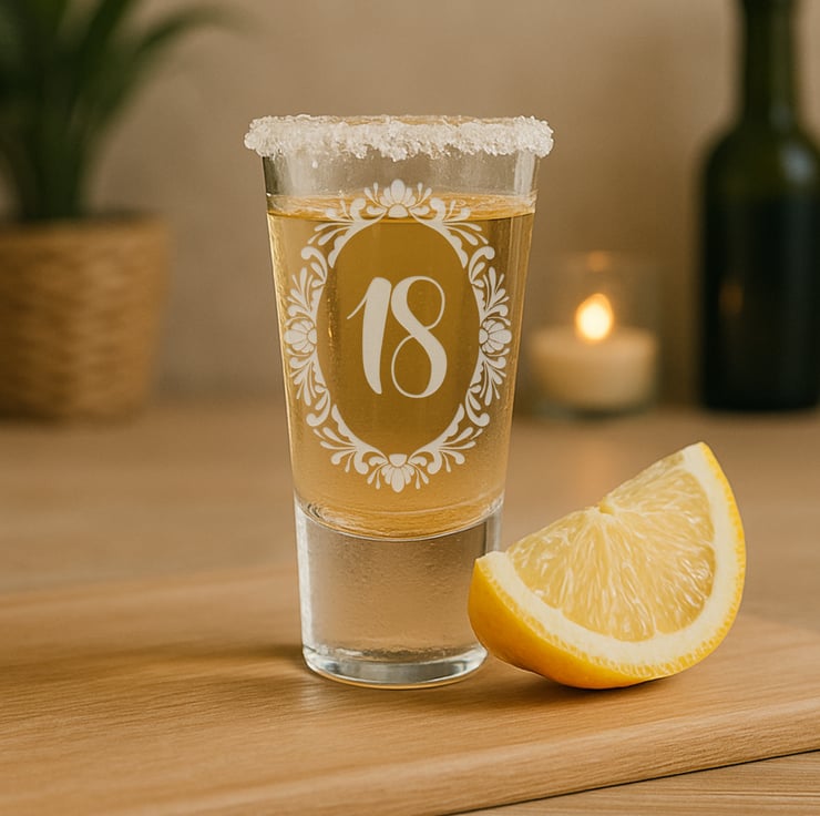 Make their birthday truly unforgettable with this beautifully engraved shot glass, framed in an ornate floral design. The elegant Regal Bloom frame surrounds your chosen age, making it the perfect keepsake gift for celebrating milestones in style. Whether it's an 18th, 21st, 30th, or any age in between, this glass is a lasting reminder of a special moment.