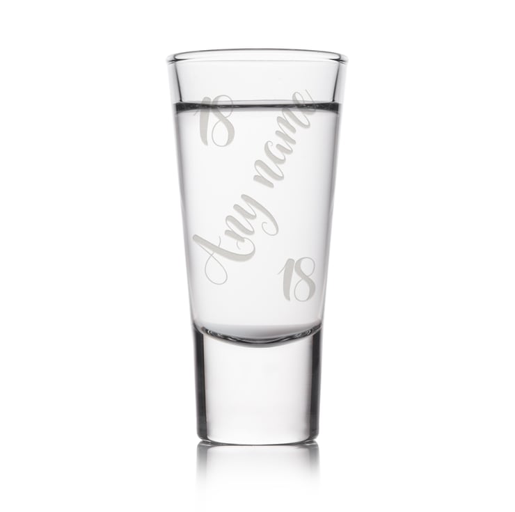 Add a touch of elegance to any celebration with this personalised engraved shot glass. Featuring flowing swirl script and your chosen age, this design is perfect for gifting on birthdays and milestones. Add any name up to 8 characters to create a beautiful keepsake that blends playful charm with lasting quality.