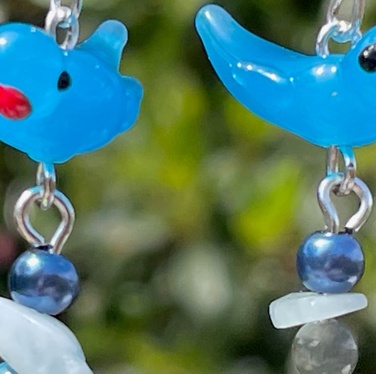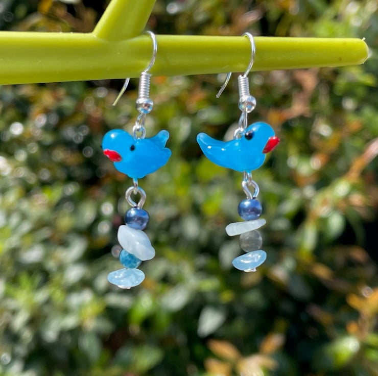 Oh we are so in love with these. Lovely gorgeous little birdy earrings in glass and semi precious stones. So summer, such a vibe!