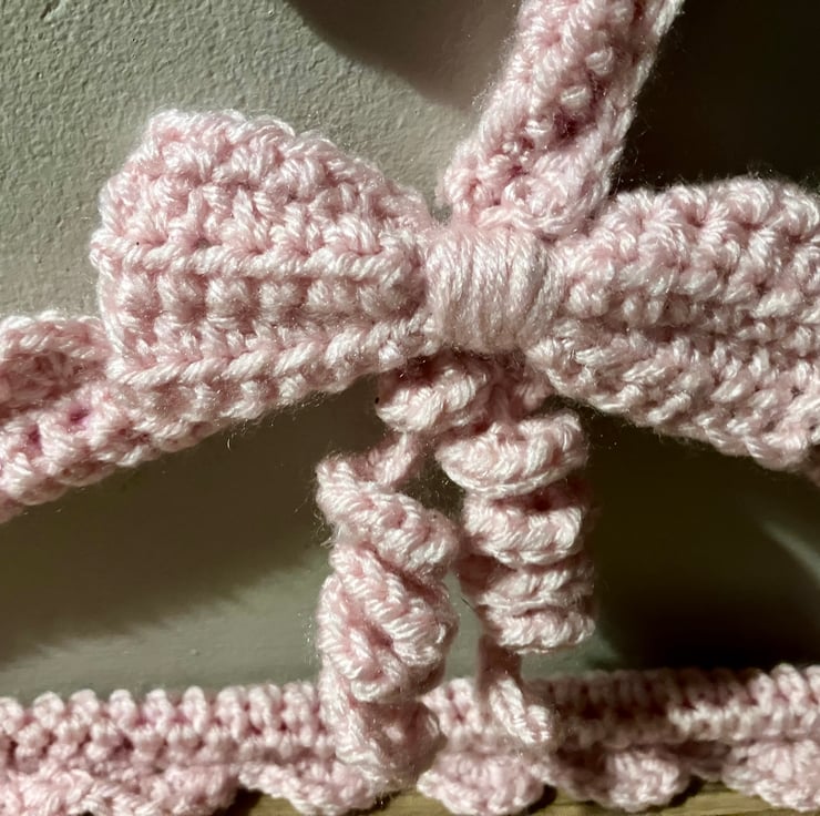 A pink crochet baby hanger. The perfect gift for a new baby. This is a functional hanger & can also be made in ivory white. Contact us if you want a white version.