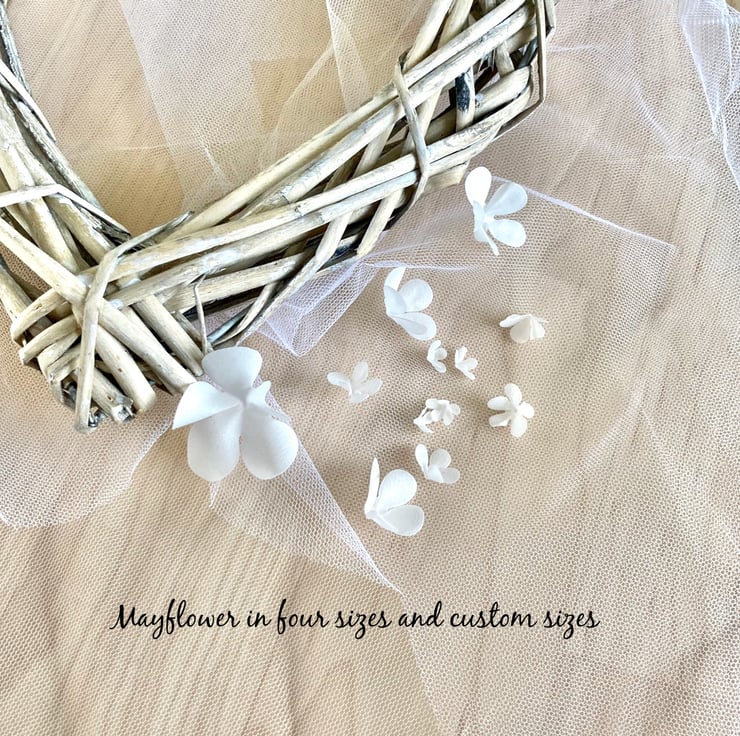 Metallic Silk Silver Organza Mayflowers in four sizes