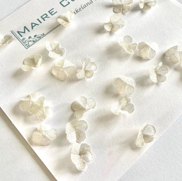 These delicate 5 petal organza flowers have a gently cupped centre, giving them a 3D profile.