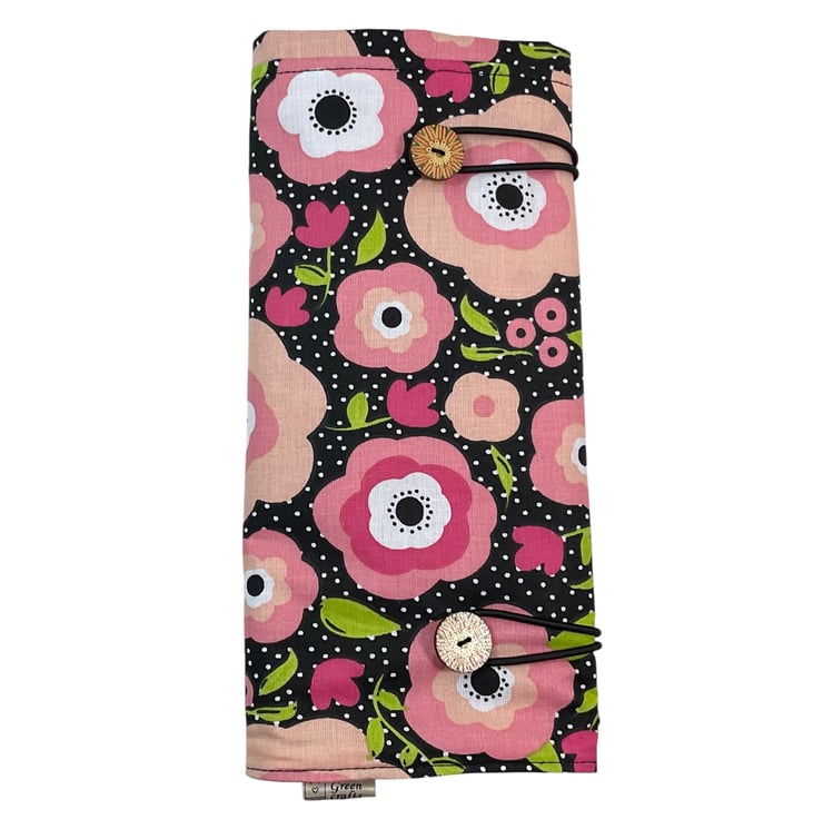 This case is made In pretty floral bold and bright printed cotton fabric,in so many vibrant shades on a striking black background.