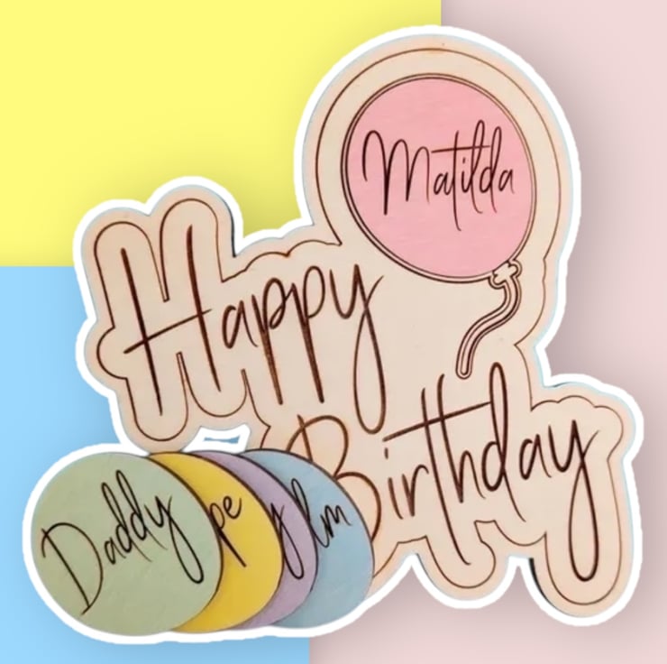 Here we have my lovely reusable cake topper in a pastel palette. This can be used again and again, year after year for every member of the family making it a truly special part of everyone’s birthday celebration!