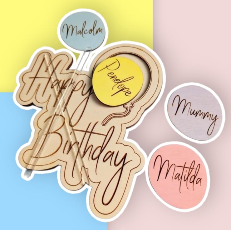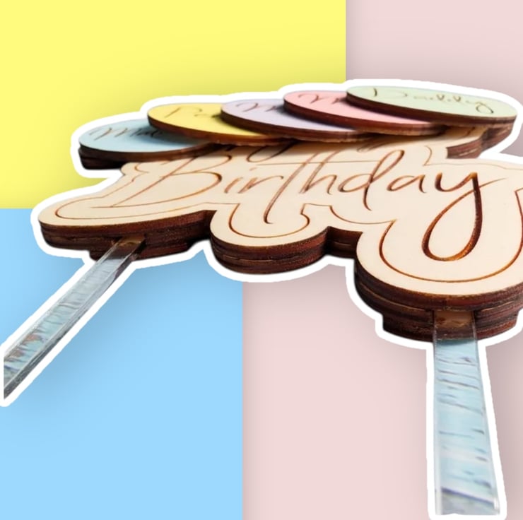 I have designed this so there are two removable acrylic rods that can be inserted and removed from both topper and cake for easy cleaning. No need to get the wood wet! The balloons are also interchangeable.