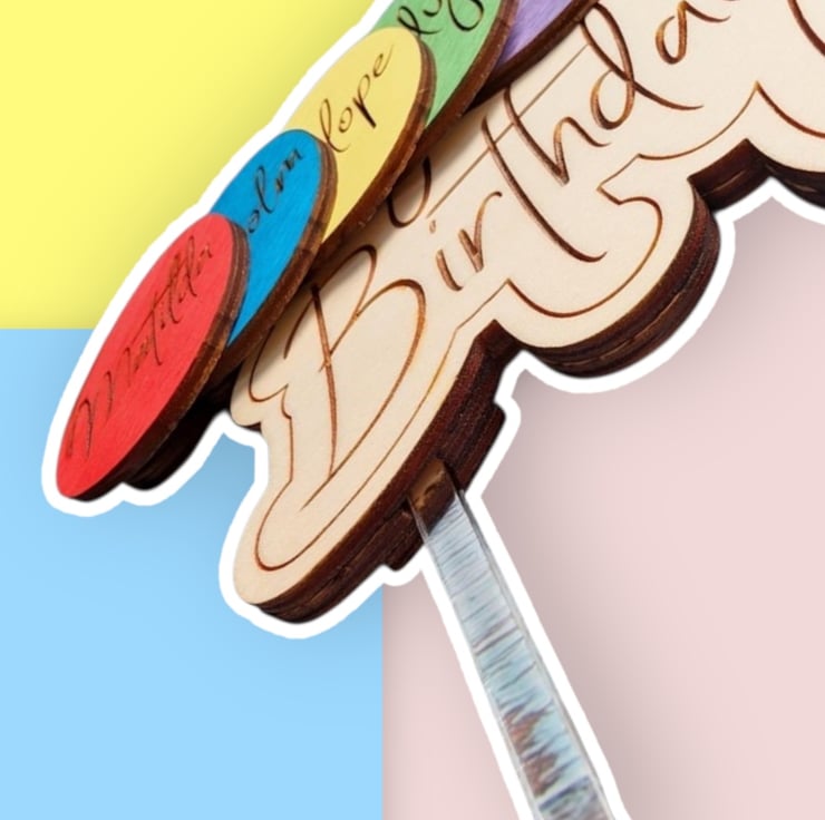 I have designed this so there are two removable acrylic rods that can be inserted and removed from both topper and cake for easy cleaning. No need to get the wood wet! The balloons are also interchangeable.