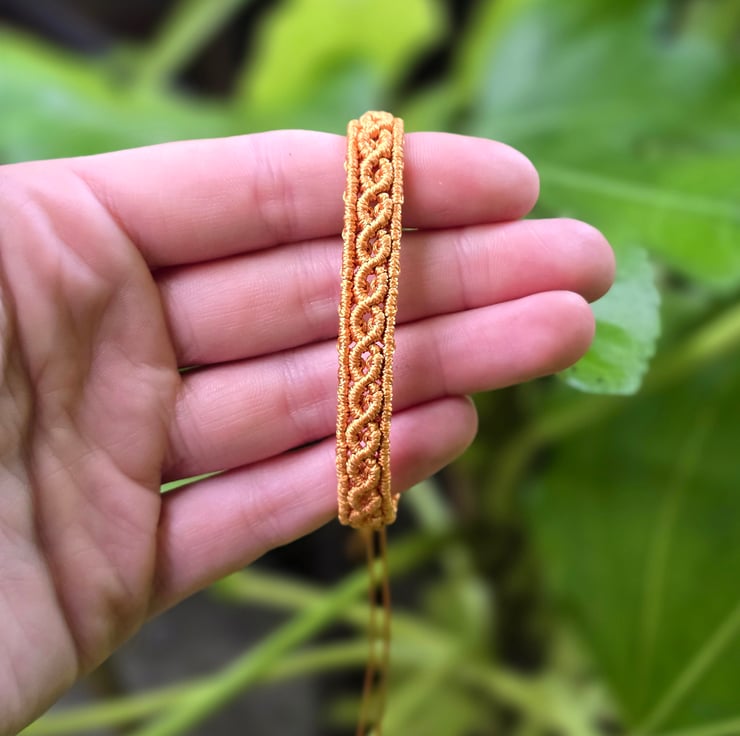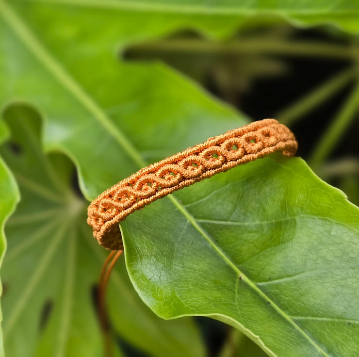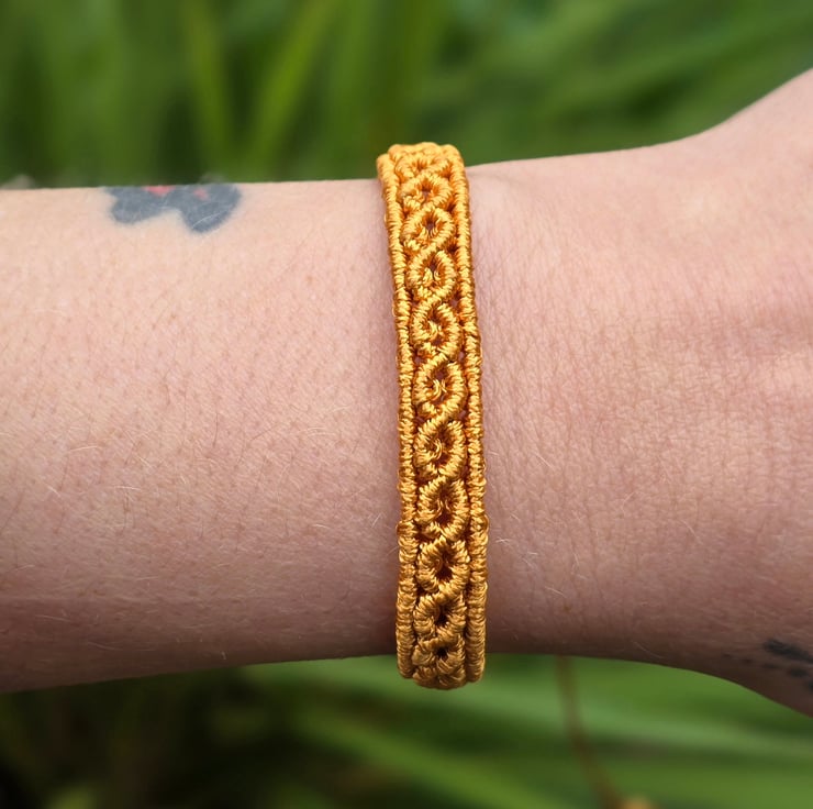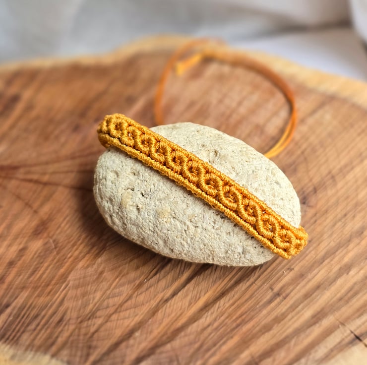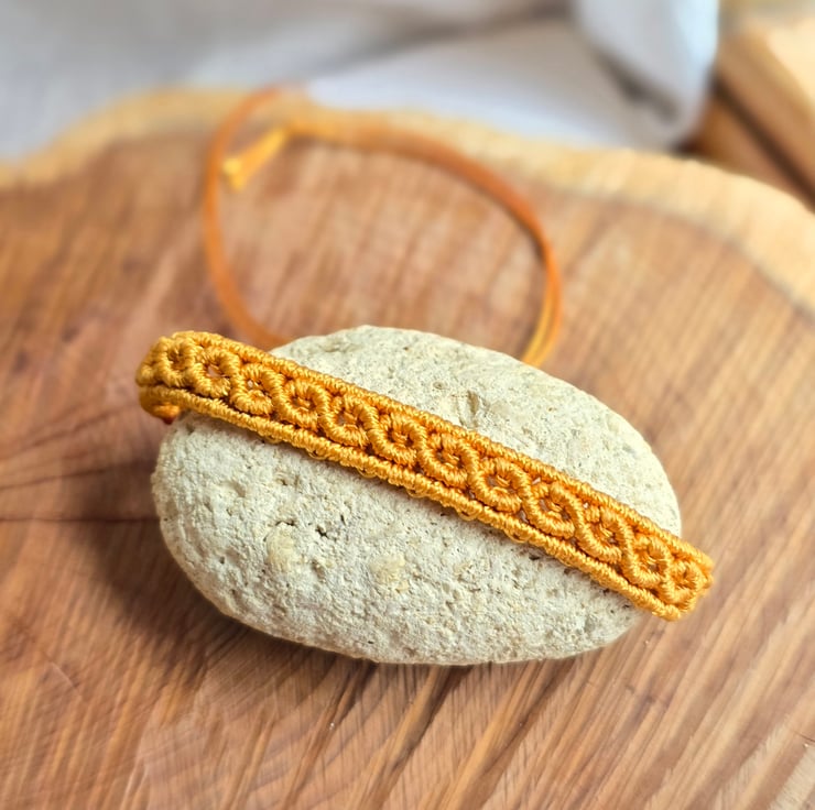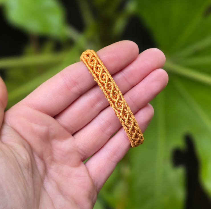 This particular micro macrame bracelet is hand woven with waxed cord for strength and durability.