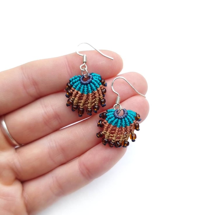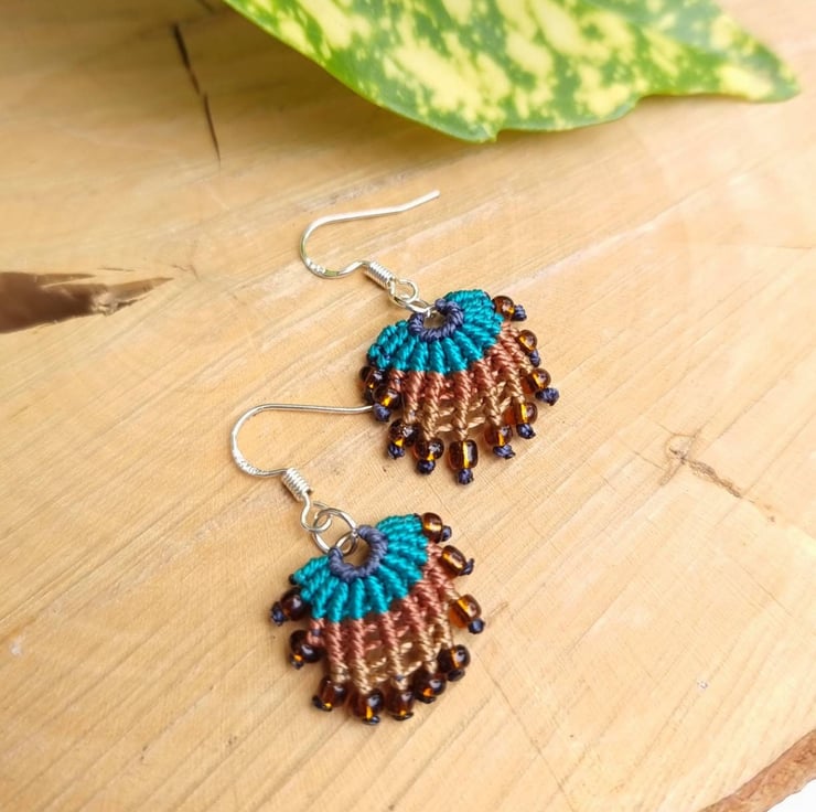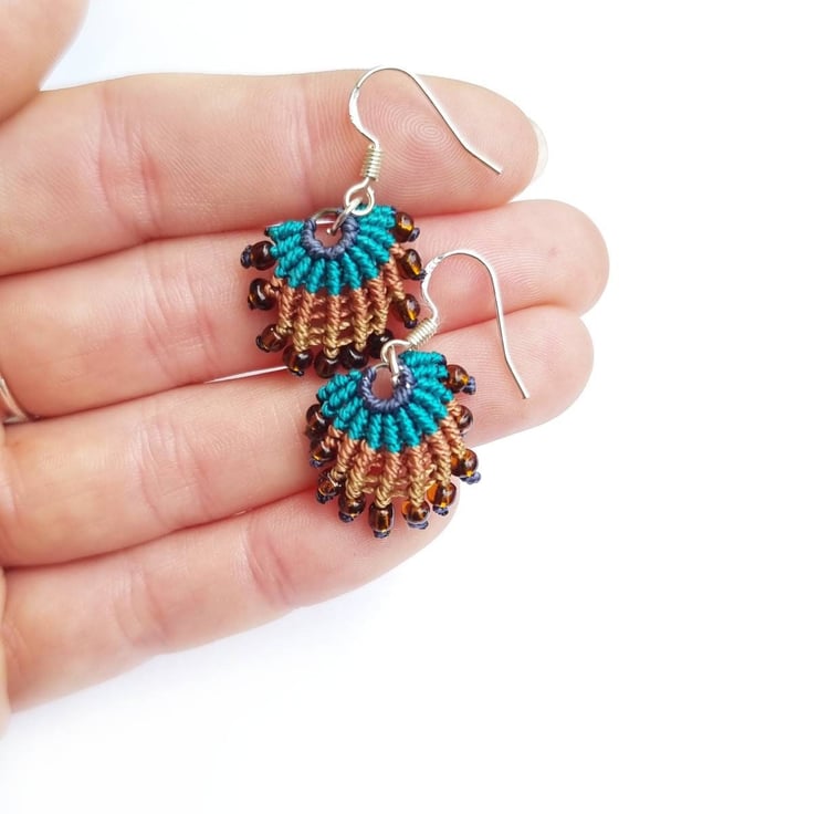 Carefully handwoven with fine cord, these nautical earrings sway elegantly from stamped sterling silver hooks, embodying a unique aquatic design. Please note I can change the hooks to any metal incase of allergies. Please do get in touch.