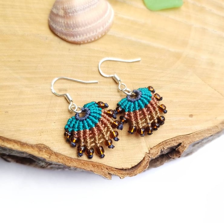 Dive into the enchantment of our mermaid earrings—exquisite micro macrame shells adorned with glass seed beads.