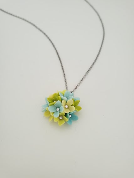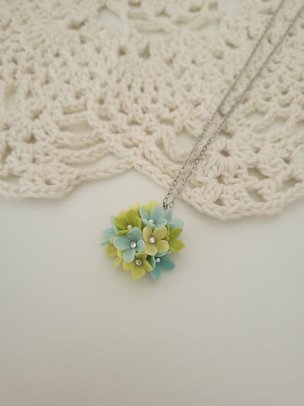Handmade Hydrangea Polymer Clay Pendant -  Dewdrop Blossom Pendant