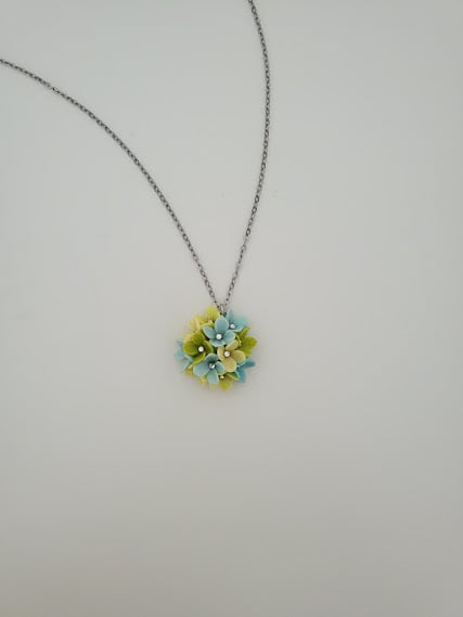 Handmade Hydrangea Polymer Clay Pendant - Dewdrop Blossom Pendant