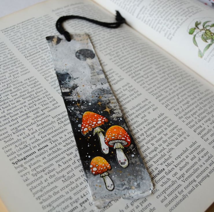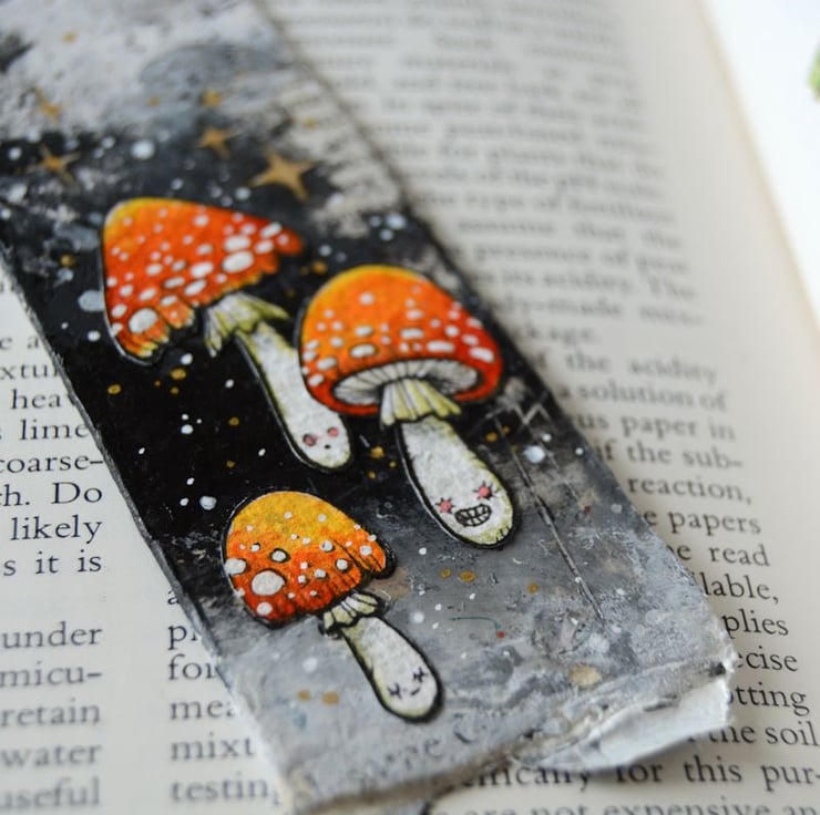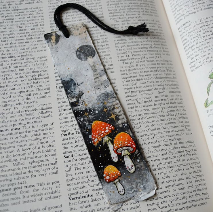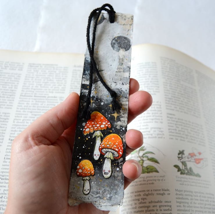 a totally unique piece of handmade paper art for any mushroom and/or book lover!