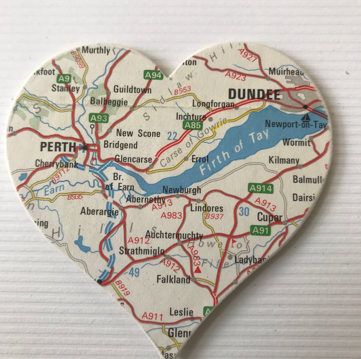 Authentic vintage maps up cycled to make these very unique mementos of places you have loved & visited.