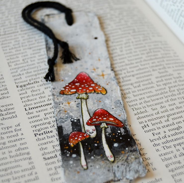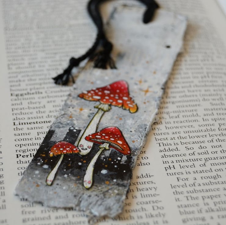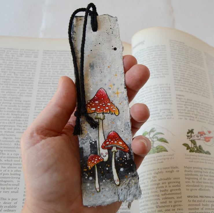a totally unique piece of handmade paper art for any mushroom and or book lover!