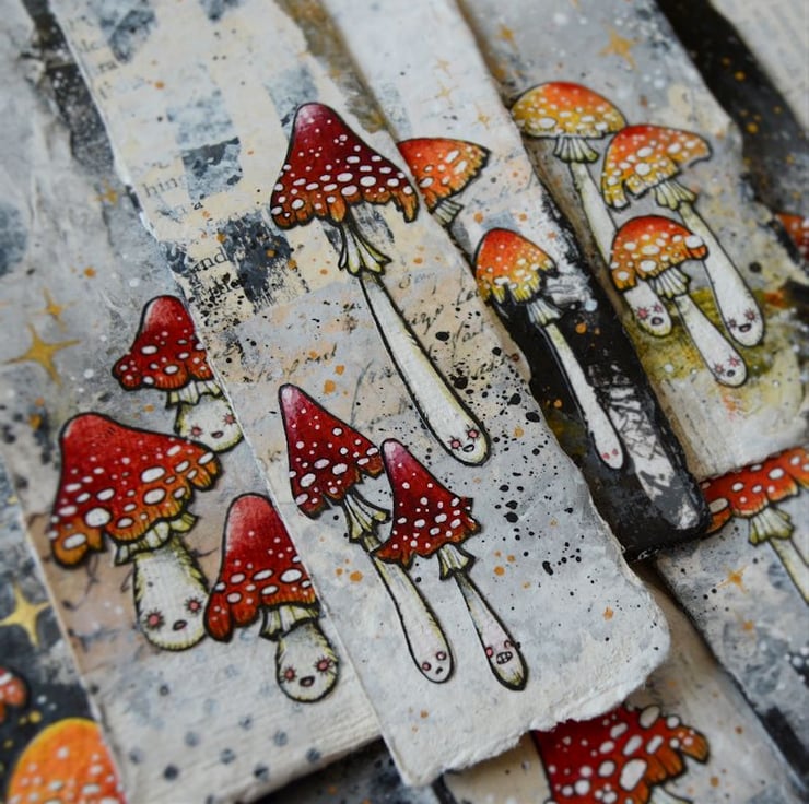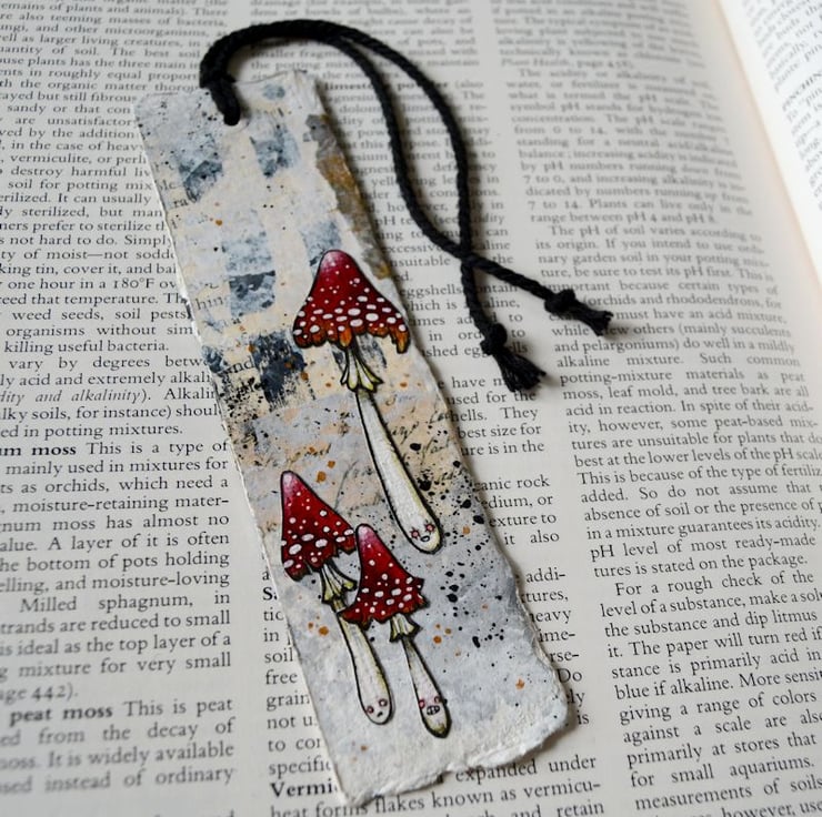 a sweet little trio of toxic toadstools, in bookmark form.