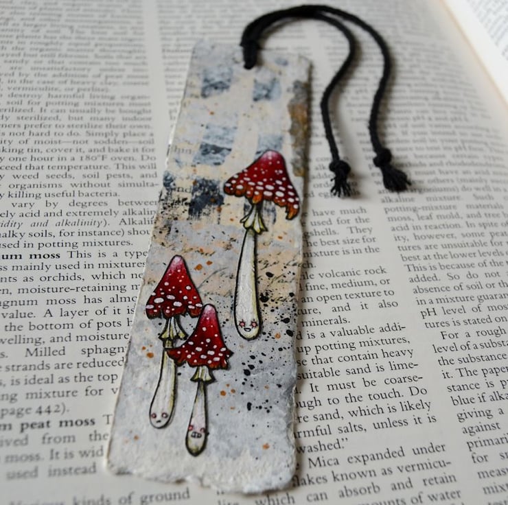 a totally unique piece of handmade paper art for any mushroom and or book lover!