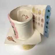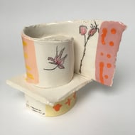 Upon retiring from a long and happy career as a physiotherapist, I embarked upon a mixed media art degree. This led me to ceramics, where I have discovered a passion for combining glazed earthenware, lightbox drawings and gold leaf to create completely unique decorative pieces.