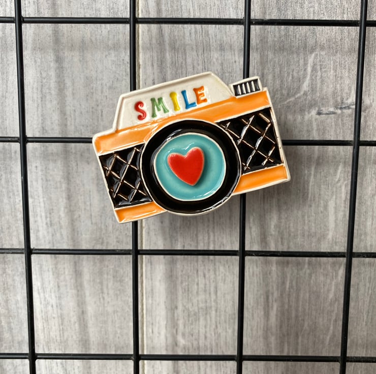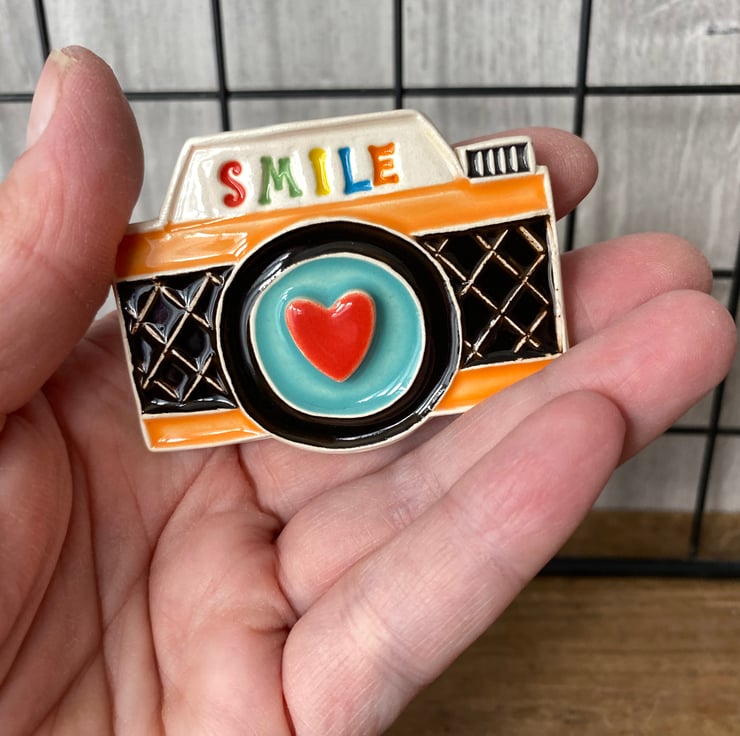 This little ceramic magnet is my own design which I have carved and then stamped into the earthenware clay. Bright detailing has been added during the glazing stage and fired twice in an electric kiln.