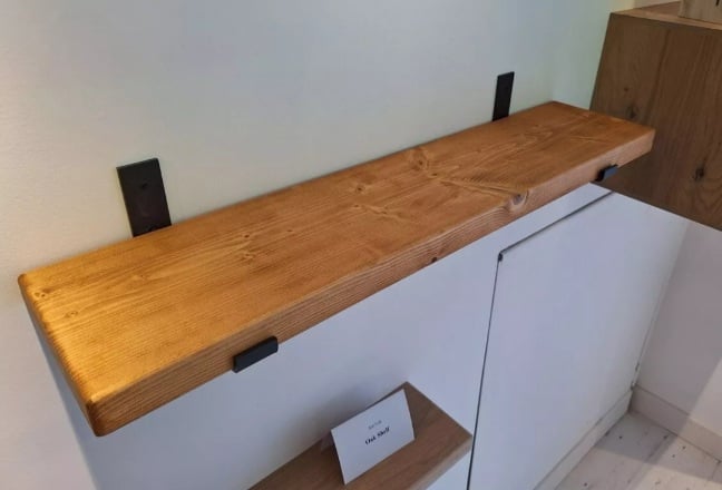 The shelves are finished with 2 coats of a high quality hard wax oil. (Finish colour options are shown on one of the pictures) or can be purchased unfinished.
