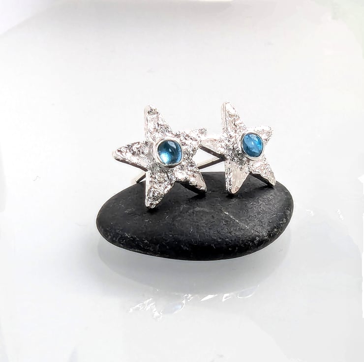 Set with a vibrant Swiss Blue Topaz 3 mm cabochon