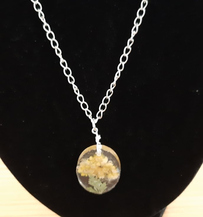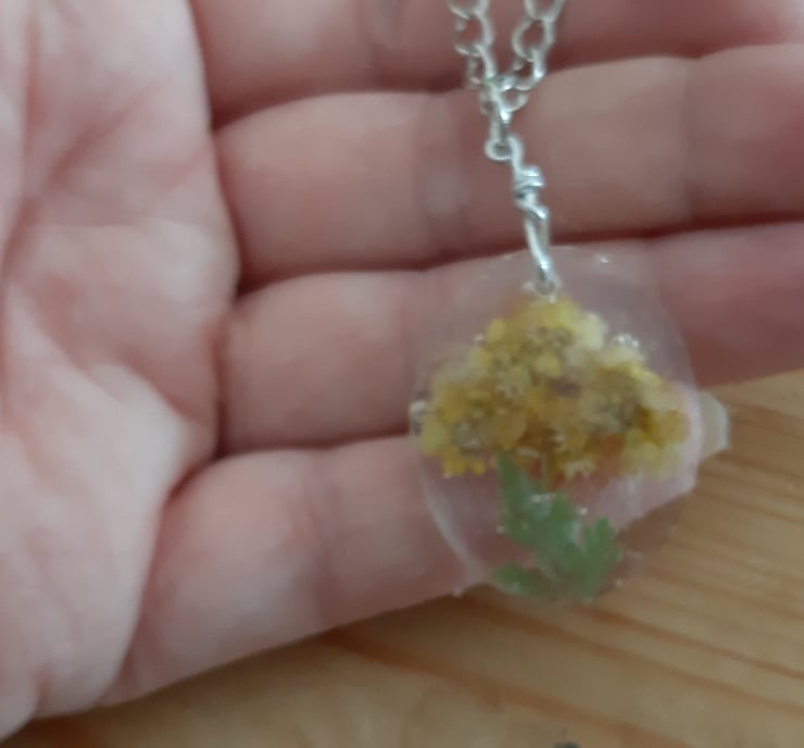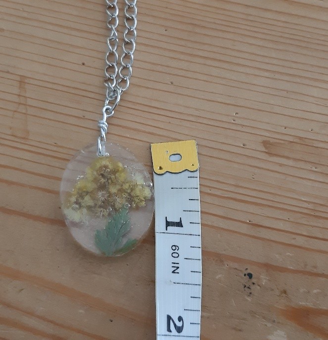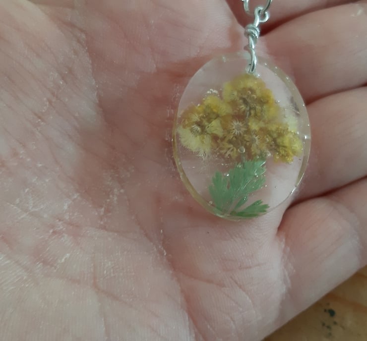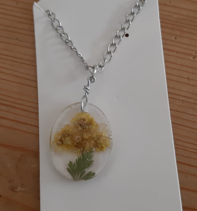 Medium Oval Resin Pendant Necklace with Yellow Dried Pressed Flowers (Design2)