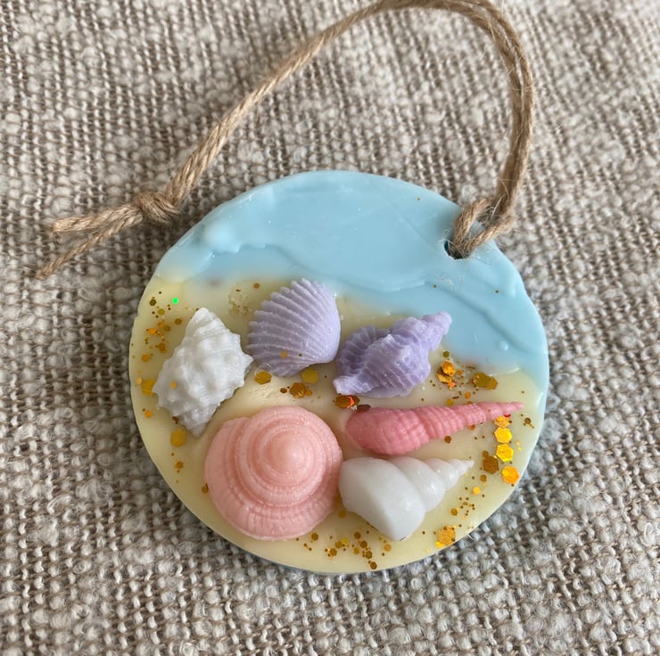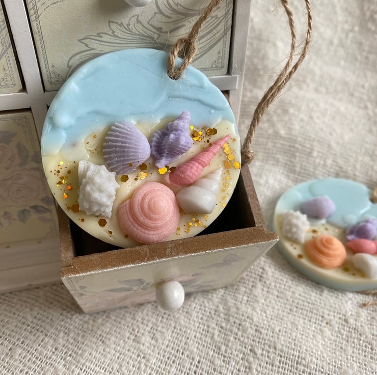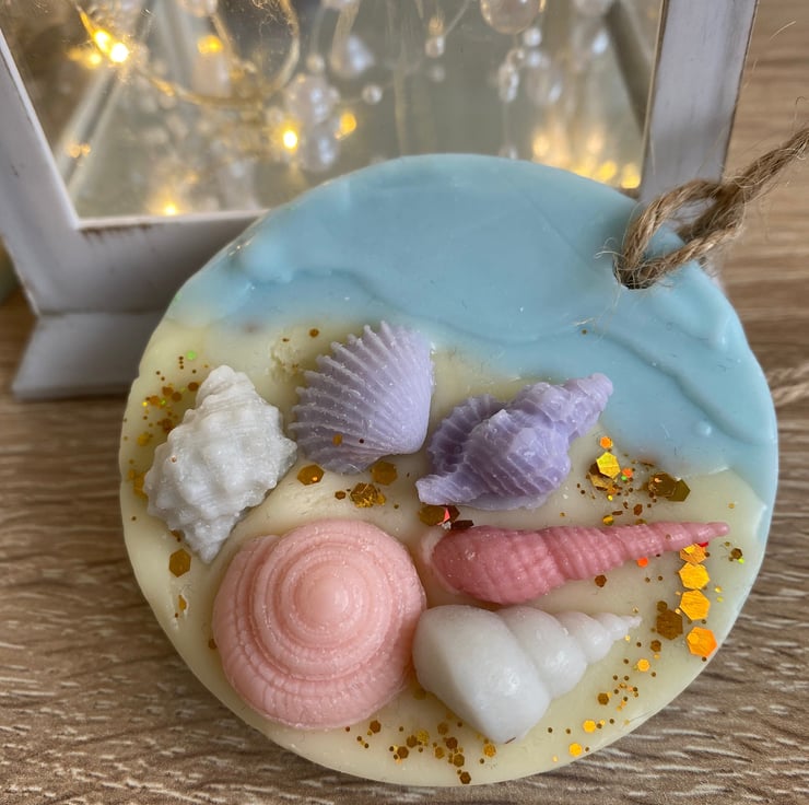 Bring the serenity of the seaside into your home with our Handmade Seashell on Sandy Beach Wax Freshener! Hand craft with eco-friendly soy wax and nfused with the refreshing Ocean fragrance, features a charming seashell on sandy beach design, making it a stunning fragrance decoration for your space. Perfect for hanging in wardrobe or small rooms, it releases a long-lasting, clean scent without a flame. Ideal for beach lovers, eco-conscious shoppers, or as a unique gift.
