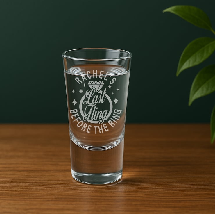 Celebrate the bride-to-be in style with our personalised Last Fling Before The Ring shot glass – the ultimate hen do accessory! Custom engraved with any name (up to 8 characters), this playful and memorable glass makes a perfect party favour or keepsake for your bachelorette bash.