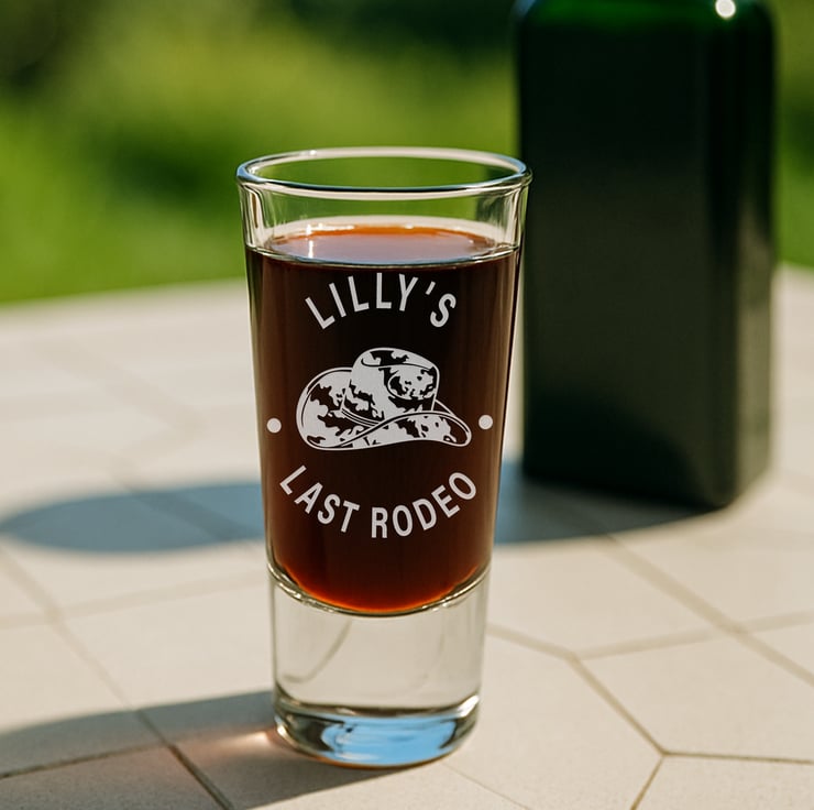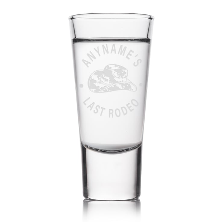 Celebrate her send-off in wild western style with our personalised "Last Rodeo" engraved shot glass – the perfect keepsake for a Hen Do to remember! Whether you're heading to Nashville or throwing a cowgirl-themed bash, this glass adds a fun, sassy touch to the festivities. Engraved with your chosen name (up to 8 characters), it's a memorable party favour for the bride-to-be and her crew.