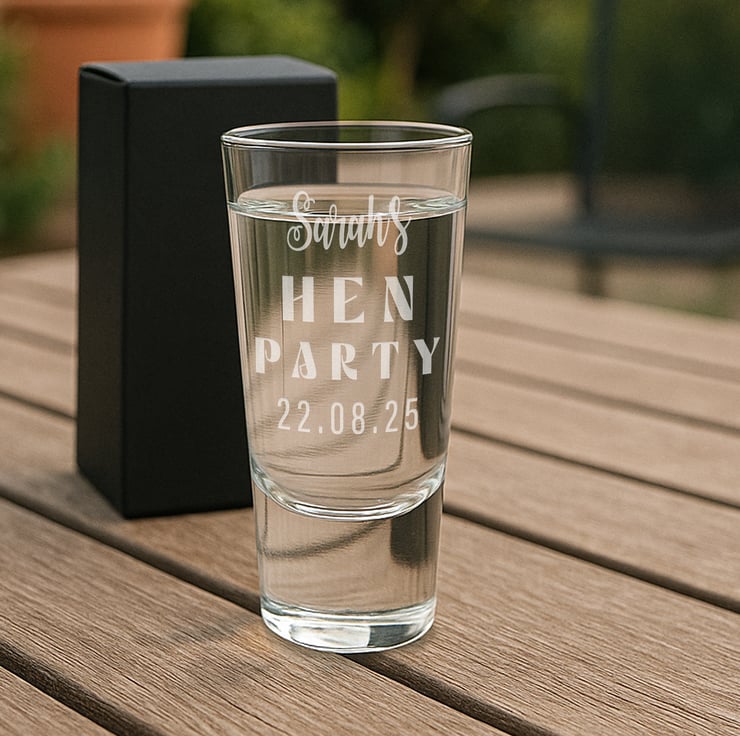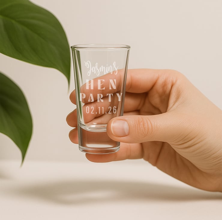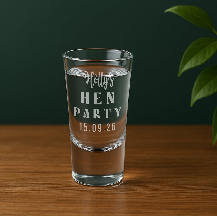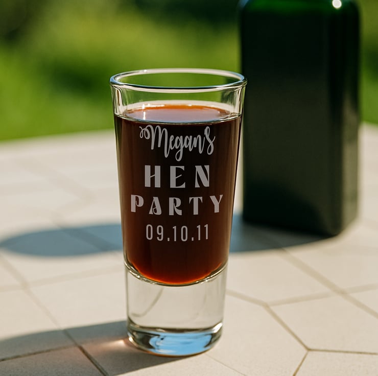 Celebrate in style with our personalised Hen Do shot glass – the perfect custom keepsake for any bride-to-be and her party crew! Whether you're planning a night to remember or looking for the ideal hen party favour, this engraved glass is a chic and thoughtful addition to the celebration.