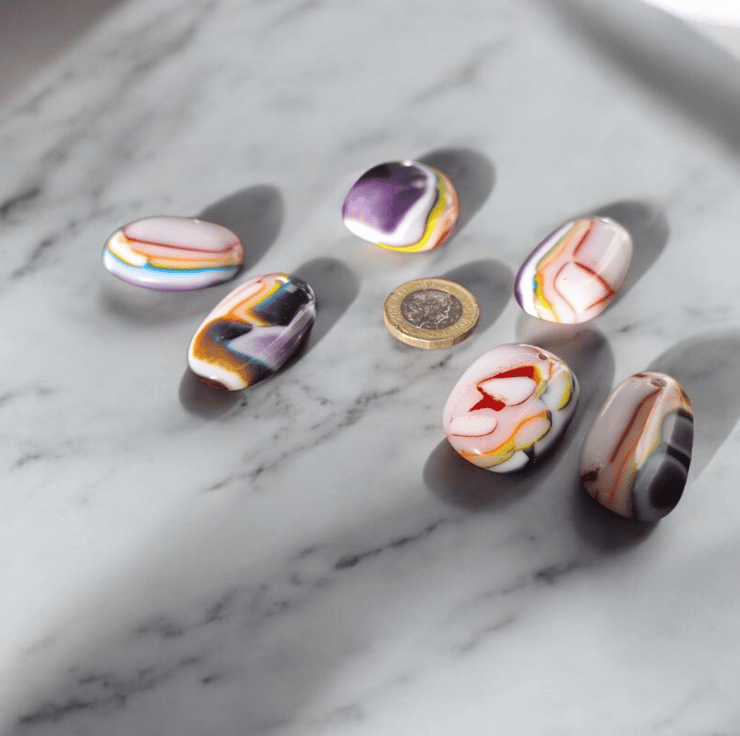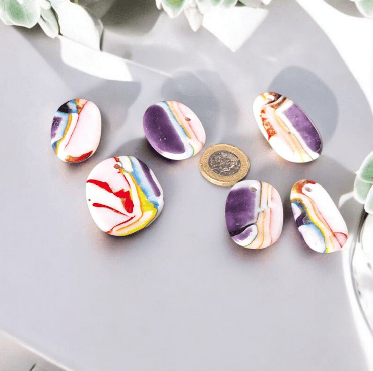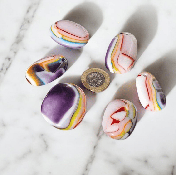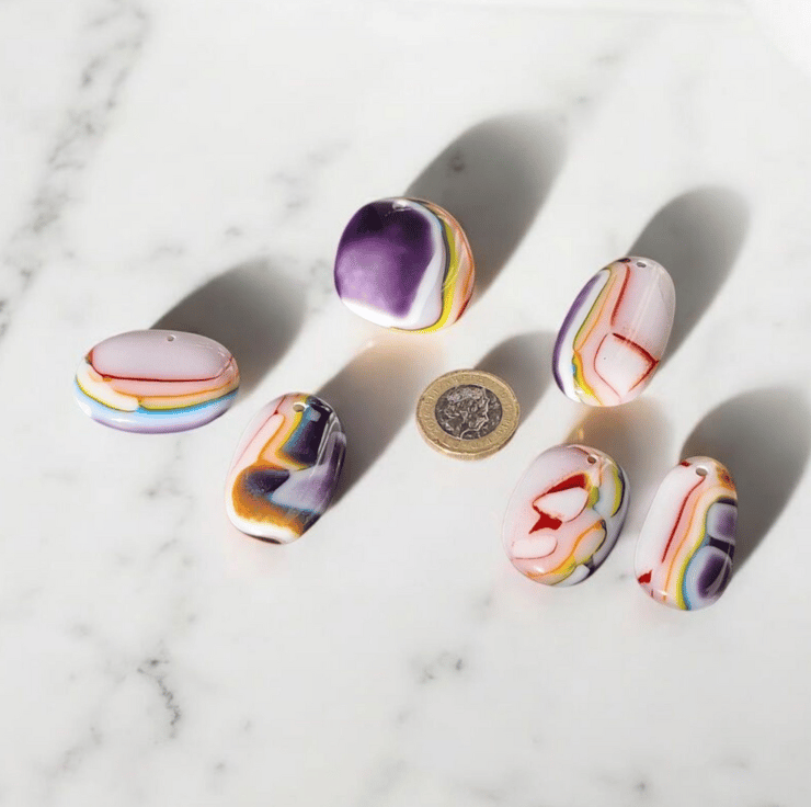 These cabochons are perfect for jewellery makers, mixed media artists or crafters looking to bulk out their stock for craft fairs. Use them for necklaces, earrings, mosaic work or collage. Twice fired for strength and shine, they are a tactile and colourful addition to your supplies.